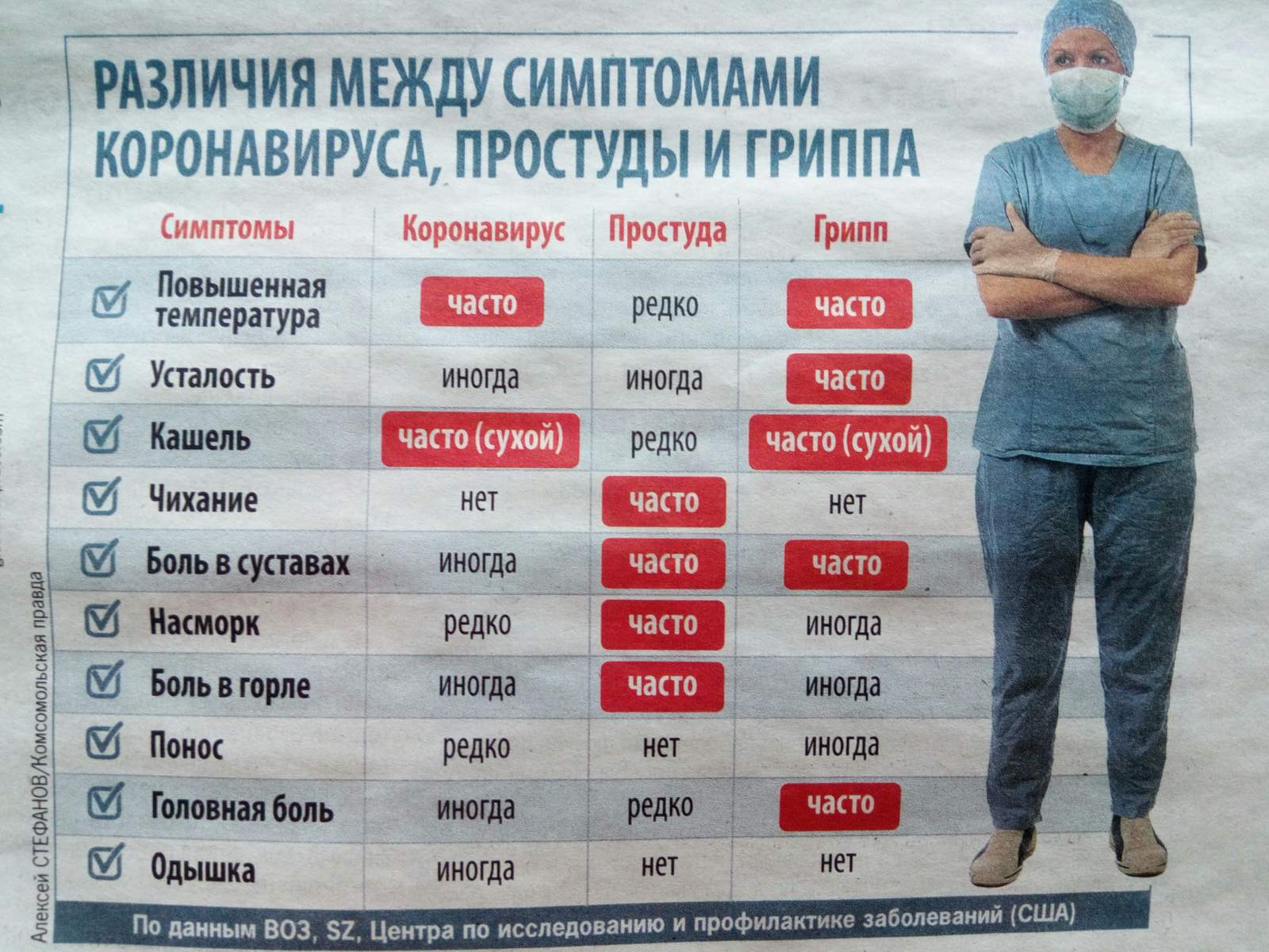 Различия между симптомами коронавируса, простуды и гриппа